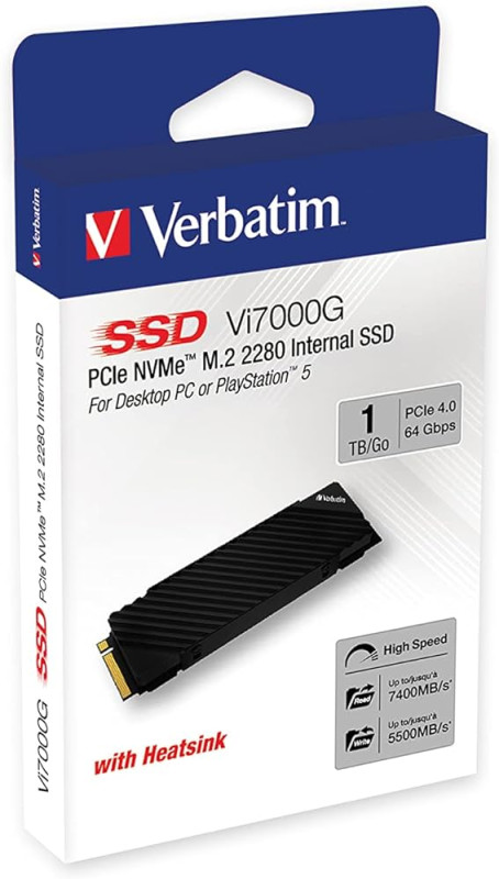 تمتع بأداء عالي السرعة مع قرص التخزين الصلب الداخلي Verbatim Vi7000G NVMe M.2 SSD. مصمم ليوفر أداءً مذهلاً وسرعات قراءة وكتابة فائقة، يوفر هذا القرص التخزين السريع والموثوق به الأداء الذي تحتاجه للألعاب، وتحرير الفيديو، والتصميم الجرافيكي، والمزيد. يأتي هذا القرص بسعة تخزينية كبيرة ويتوافق مع أجهزة الكمبيوتر التي تدعم تقنية NVMe M.2، مما يجعله اختيارًا مثاليًا لترقية جهاز الكمبيوتر الخاص بك وتعزيز أدائه بشكل كبير. احصل على سرعة وأداء لا مثيل له مع Verbatim Vi7000G NVMe M.2 Internal SSD.